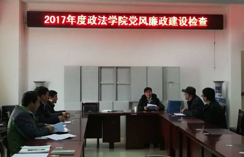 王芳恒副院长首先听取了政法学院党总支2017年党风廉政建设主体责任工作开展情况的汇报,并认真查阅了相关工作材料。他指出:2017年政法学院在党风廉政建设主体责任工作开展中能严格按照上级会议及相关文件精神,认真贯彻落实上级党委的各项规定和要求,能端正工作作风、提高服务意识,使学院各项工作任务得到较好完成并取得了良好的工作成效。