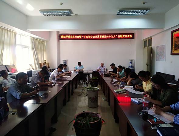 为了进一步贯彻上级及学校党委要求,按照《安顺学院关于推进“两学一做”学习教育常态化制度化的实施方案》规定,10月9日,政法学院党总支教师党支部召开党员大会暨“不忘初心议发展 喜迎党的十九大”主题党日活动。参加会议的有政法学院领导及所有教师党员,会议由徐忠院长主持。