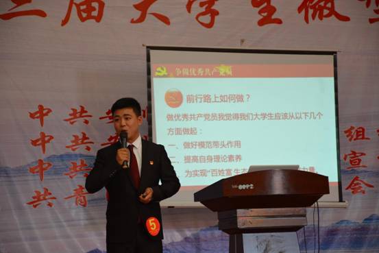 6月23日下午,由中共安顺学院委员会主办,中共安顺学院委员会组织部、宣传部、校团委共同承办的“安顺学院第三届大学生微型党课比赛”在学术报告厅举行。活动旨在重温党的光辉历史、歌颂党的丰功伟绩,展示我校大学生党员在学习党史、党章党规,学习习近平总书记系列讲话过程中的所思、所悟、所获。