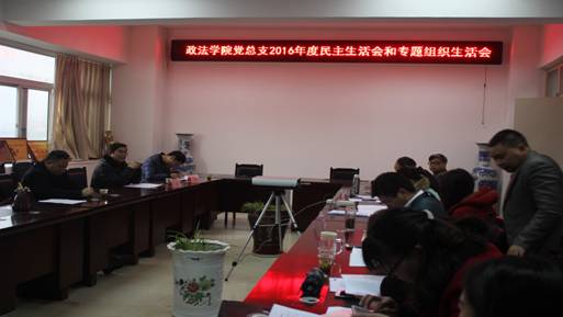 崔晓莉副书记传达了《中共安顺学院委员会办公室关于转发省纪委、省委组织部和市纪委、市委组织部关于召开2016年度民主生活会和专题组织生活会的通知》、通报了政法学院2015年民主生活会整改落实情况以及2016年度民主生活会前征求意见建议的相关情况;接着由政法学院领导班子、领导成员对照《关于新形势下党内政治生活的若干准则》和《中国共产党党内监督条例》要求,从理想信念、政治纪律和政治规矩、作风、担当作为、组织生活、落实全面从严治党方面查找突出问题,提出整改措施。与会党员积极发言,对政法学院领导班子及成员提出了中肯的批评意见。