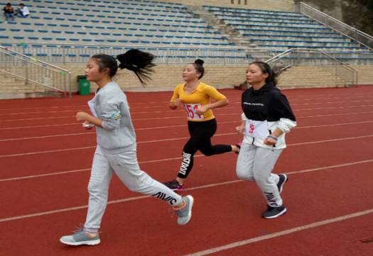 16级城市管理班吴隆铃和周睿两位同学在女子10000米比赛中