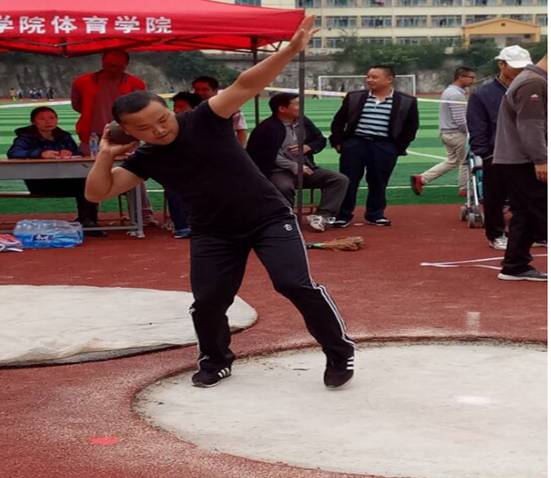 岑英武老师在铅球比赛中