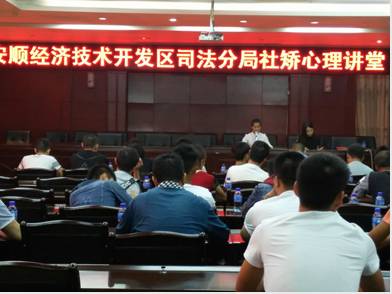 为进一步做好社区矫正工作,安顺市开发区司法局与安顺学院政法学院签订社区矫正协议,政法学院老师对开发区社区矫正人员实行心理帮扶,促使社区矫正人员提高心理素质,塑造健全人格,增强社会适应能力,切实提高社区矫正工作的质量和效果,2016年8月23日上午,安顺学院政法学院教师张阳在开发区管委会举办了第一堂题为“爱你如是”的社区矫正心理辅导讲座。