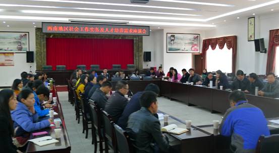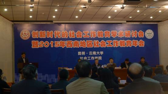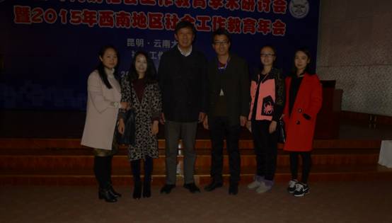 2015年12月12日由中国社会工作教育协会主办,云南大学承办的“创新时代的社会工作教育学术研讨会”暨2015年西南地区社会工作教育年会在云南昆明举行,政法学院社会工作教研室教师彭建斌、胡文兰、张阳、牛晶晶、彭博等参加了本次年会,与来自云、贵、川、渝西南四地30余所高校的社会工作专家、学者进行了交流。