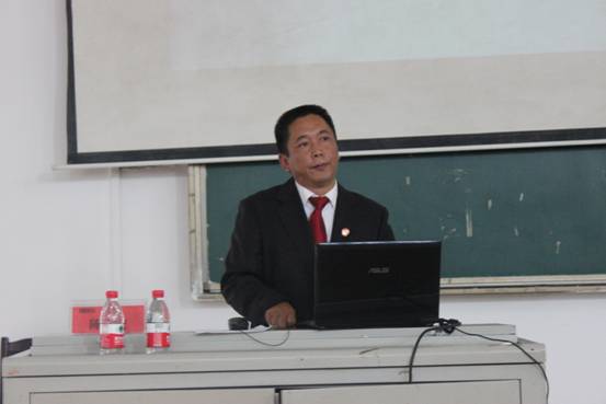 为传播法治精神,弘扬法治理念,实施法官进校园行动计划,2015年10月20日下午,政法学院邀请安顺市中级人民法院刑二庭庭长、副调研员陈佳宏法官在学校新教学楼A11教室作“法律的生命在于经验”的学术讲座。政法学院党总支书记院长徐忠、政法学院法学教师以及2014、2015级思想政治教育专业法治教育方向全体同学共一百六十余人参加了讲座。讲座由政法学院法学教研室主任邓肄博士主持。