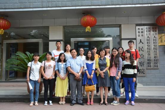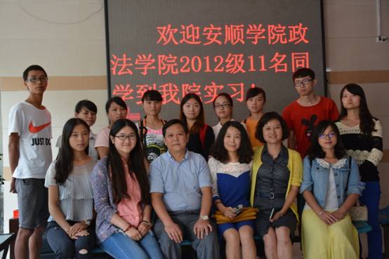 8月31日下午四点,政法学院张洪智老师、牛晶晶老师送12级思想政治教育、社会工作专业学生皮文静、谭丽等11位同学到安顺市西秀区人民检察院实习。