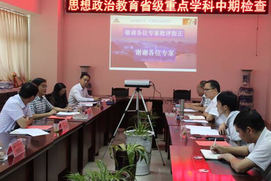 会上,胡必坚副院长首先介绍了参会的各位领导和专家,并介绍了思想政治教育重点支持学科建设的基本情况。政法学院书记徐忠用PPT介绍了思想政治教育省级重点支持学科建设进展情况、中期研究成果经费的使用情况及今后的研究计划等,随后与会专家一一对拟进行了评议,与会专家围绕服务地方、人才培养、专业方向、经费使用、下阶段研究的重点和难点等内容提出了许多宝贵建议。