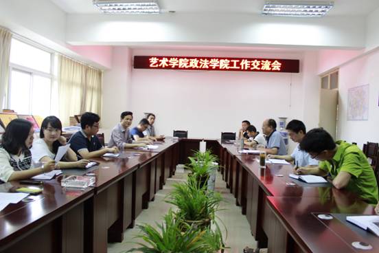 2015年6月23日上午,为交流教学管理经验,做好本科教学工作合格评估的准备工作,罗文帝教授带领艺术学院教师与政法学院开展了教学管理工作的交流活动。政法学院党总支书记徐忠对艺术学院教师的到来表示热烈的欢迎,并就近期政法学院在教学、科研及管理方面的情况进行了介绍,热情地解答了艺术学院教师就学科专业建设、教学管理及学生活动方面提出的问题,最后相关教师进行了对口的交流。双方表示此次交流活动使大家都取得了较大的收获,今后还要继续开展相关活动,提高教学管理水平。