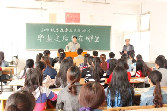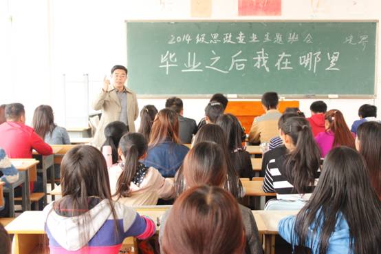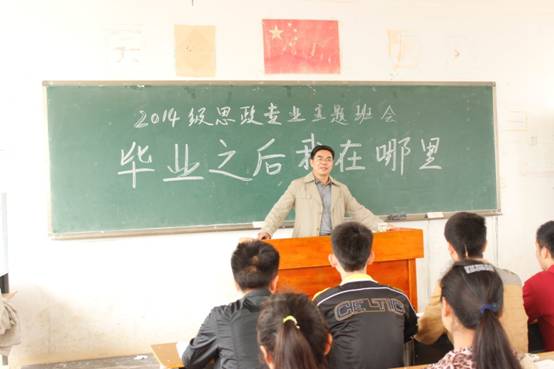 为巩固扩大党的群众路线教育实践活动成果,加强我院大学生思想政治教育工作,根据安顺学院《关于建立学校领导班子成员兼任班级导师制度的通知》文件精神,王芳恒副校长作为政法学院思想政治教育专业2014级本科班兼职导师,于2015年4月29日上午在841教室与该班同学见面并召开主题班会。