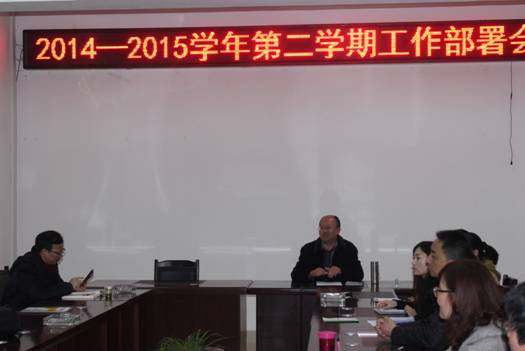 2015年2月28日上午,按照学校中层干部会议安排,政法学院召开2014-2015学年第二学期工作部署会议。会议由政法学院党总支徐忠书记主持,政法学院全体教师参加了会议。