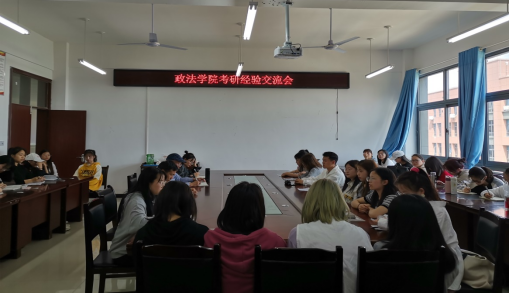 2022年5月6日下午2点40分,政法学院在学院会议室举行2022届考研交流会,参加此次会议的有政法学院院长徐忠、副院长马银成、团总支书记潘桂芳,2018级考上研究生的学生以及2019级准备考研的学生,会议由马银成副院长主持。