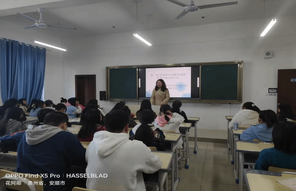 诚实信用是中华民族传统美德,是社会主义核心价值观的重要部分。为加强大学生信用教育,提升大学生信用意识,锻炼大学生宣传诚信文化和信用知识的能力,营造诚实守信的社会氛围,助力社会信用体系建设,2022年11月2日上午,第一届“信风杯”信用教育创意作品大赛动员会在乐学楼408教室举行,参加本次大会的人员有信用风险管理与法律防控专业负责人张秋副教授以及2022级信用风险管理与法律防控专业的全体学生。