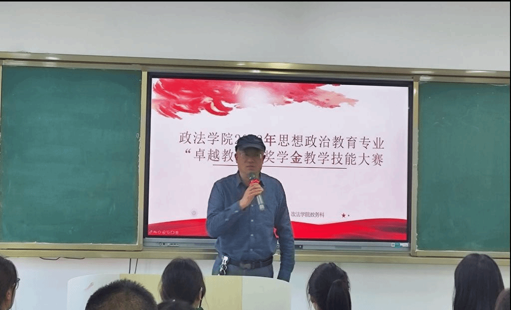 为进一步培养教师情怀,提高师范生教学技能,2022年11月11日下午14:00,政法学院2022年思想政治教育专业“卓越教师”奖学金教学技能竞赛在乐学楼J402举行。学院院长徐忠、副院长马银成、教师何江、罗宪志、瞿家儒、张俊祥、李林等担任本次比赛评委。思想政治教育专业部分学生到场观摩。