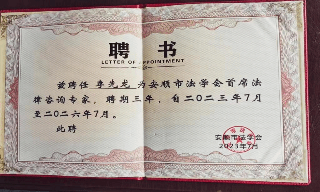 2023年7月7日,安顺市法学会召开首席法律咨询专家工作会议,我校李先龙、肖仕刚两位老师受聘担任安顺市法学会首席法律咨询专家。