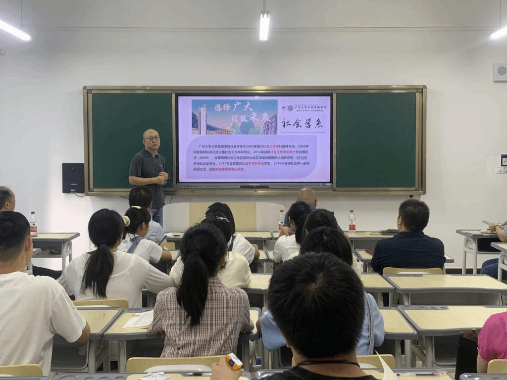 张庆鹏主任向全体师生介绍了广州大学社会学系的发展脉络、师资队伍建设、科学研究等方面。
