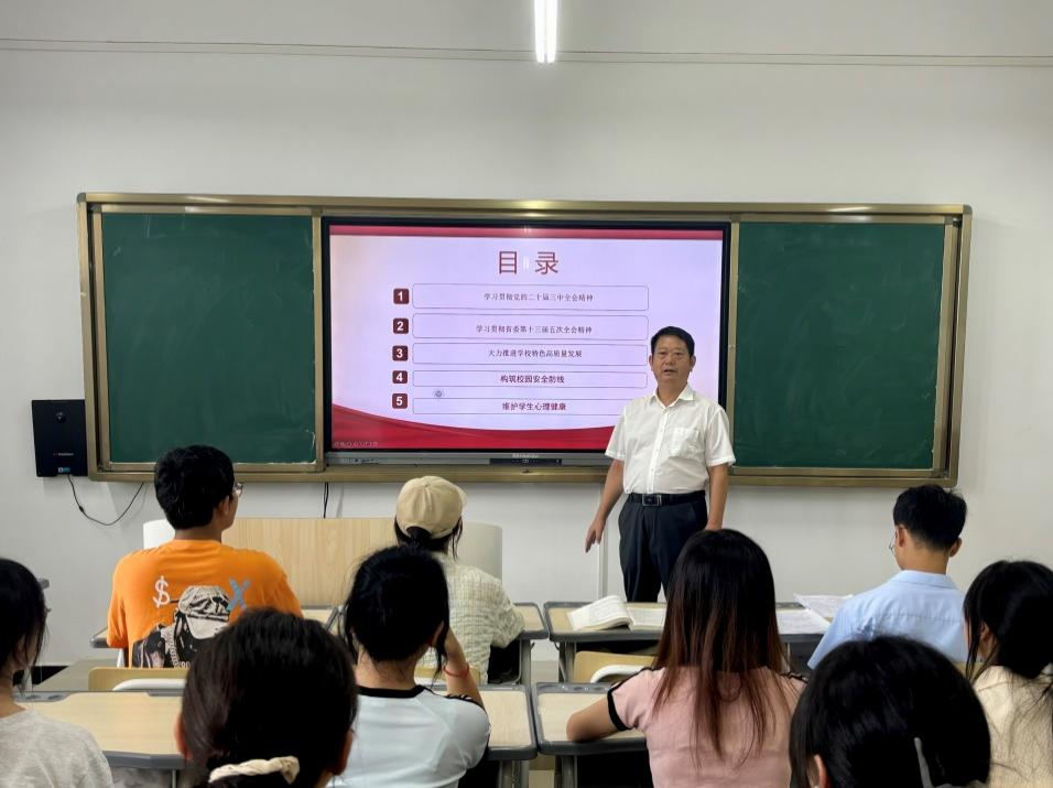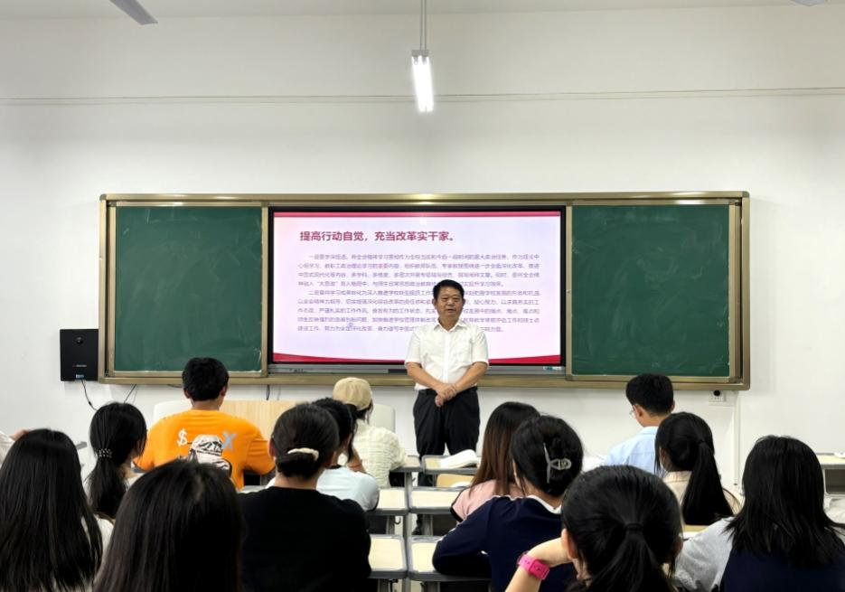 陶文彩首先向同学们宣讲党的二十届三中全会精神,强调要深刻认识和领会进一步全面深化改革、推进中国式现代化的重要性,特别是要深刻认识和领会教育、科技、人才在国家现代化建设中的基础性、战略性支撑作用。他鼓励同学们将个人发展融入国家大局,为实现中国梦作出贡献。