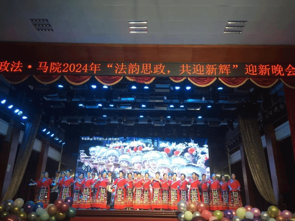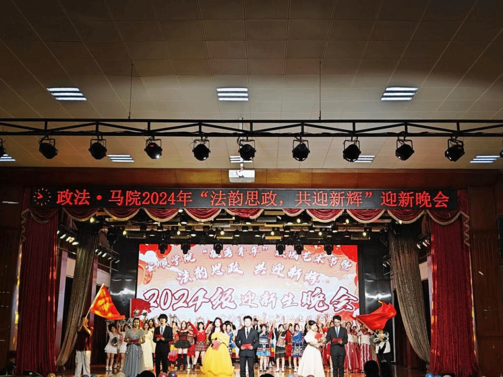 2024年11月11日晚,由政法学院与马克思主义学院联合举办的“法韵思政,共迎新辉”迎新生晚会在安顺学院大礼堂隆重举行。政法学院和马克思主义学院领导、老师和同学观看了此次晚会。