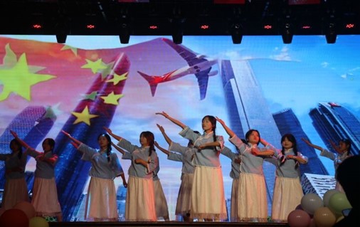 随后,六位主持人联袂登台,正式宣布晚会拉开帷幕。整场演出节目丰富、形式多样,既有深情激昂的集体合唱,也有韵味十足的民族舞蹈,更有铿锵有力的青春诗朗诵。一个个精彩节目轮番上演,不断点燃现场气氛,掌声与喝彩声此起彼伏。